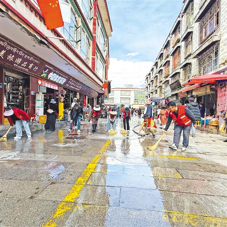 近日,拉薩市城關(guān)區(qū)八廓街道沖賽康社區(qū)黨總支開展“黨建引領(lǐng)聚合力,清潔家園促文明”環(huán)境整治活動(dòng)。30余名黨員志愿者、駐社區(qū)工作隊(duì)員及網(wǎng)格員分工協(xié)作,手持清潔工具深入大街小巷,清理衛(wèi)生死角、鏟除墻面小廣告,并對(duì)廣場(chǎng)地面進(jìn)行高壓沖洗?;顒?dòng)以“黨建紅”引領(lǐng)“生態(tài)綠”,推動(dòng)基層治理與文明城市創(chuàng)建深度融合,為社區(qū)居民營(yíng)造整潔宜居的生活環(huán)境。記者 央金 攝