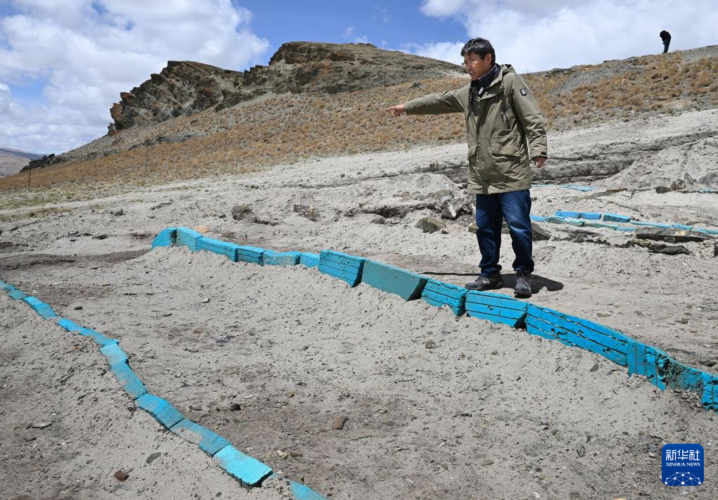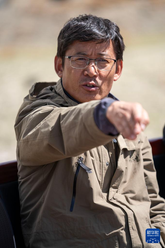 5月22日,聯(lián)合考古隊(duì)領(lǐng)隊(duì)夏格旺堆在瑪不錯遺址向記者介紹考古發(fā)掘情況。新華社記者 旦增尼瑪曲珠 攝 ??