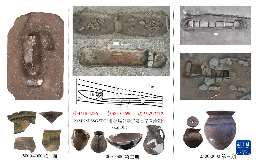 這是瑪不錯遺址各期典型墓葬和陶器特征。新華社發(fā)(西藏自治區(qū)文物保護(hù)研究所供圖) ??