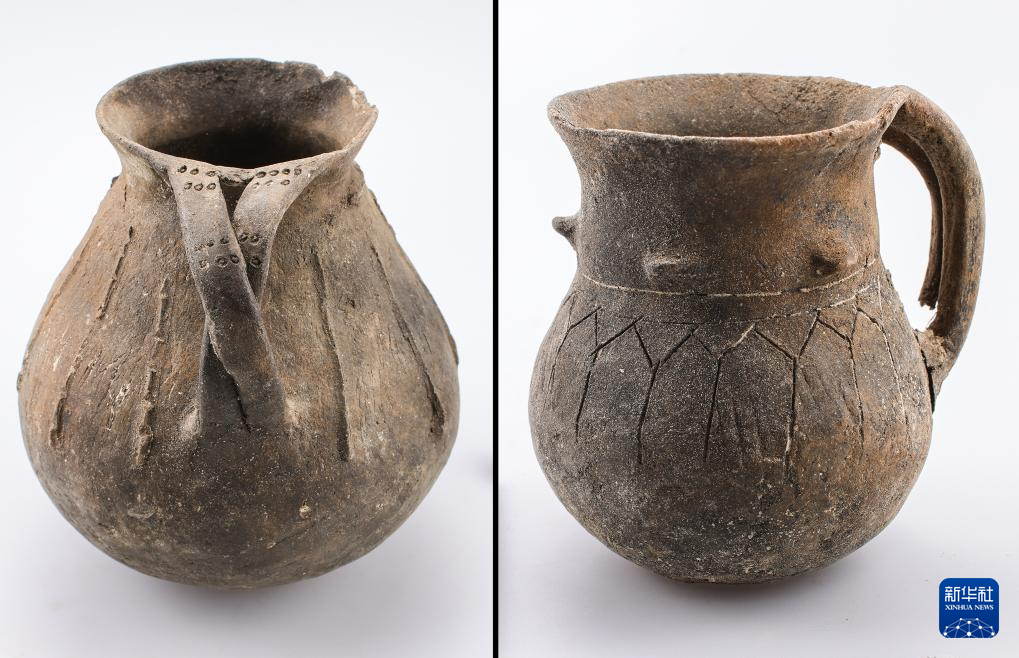 這是瑪不錯遺址出土的第二期典型陶器(拼版照片)。新華社發(fā)(西藏自治區(qū)文物保護(hù)研究所供圖) ??