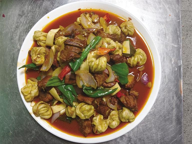 店內(nèi)生意紅火,但背后的辛苦只有王林生自己知道?!拔渫媸持v究純手工,面團(tuán)得反復(fù)揉搓,做出來的面條才筋道爽滑。剛開始學(xué)揉面,胳膊酸得抬不起來,做出來的面也不對(duì)味。”王林生說,印象深刻的是,第一次在高原煮面條,面好像怎么也煮不透。后來,他才明白高原的水只燒到八十多度就開了,煮面要用高壓鍋。他不放棄,一遍遍地調(diào)整揉面的力道和醒發(fā)的時(shí)間,反復(fù)試驗(yàn)煮面的火候,甚至不惜成本從老家運(yùn)面粉過來。終于,那一碗正宗的“涼州大寬”從鍋中撈出,澆上自家熬制的濃香四溢的牛肉臊子,潑上一勺滾燙的辣油,撒上翠綠的香菜、蒜苗。這口扎實(shí)熱乎的武威風(fēng)味,竟成了不少高原異鄉(xiāng)人舌尖上的撫慰。