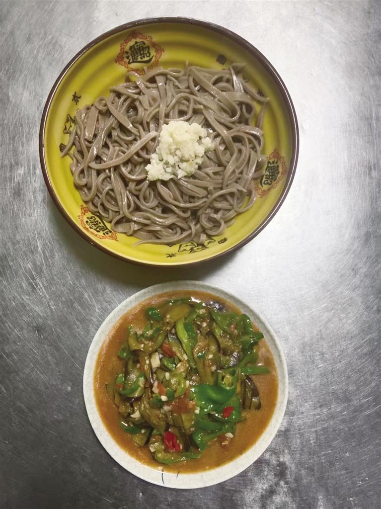 走進(jìn)麥香面莊,幾位客人熱烈地談?wù)撝ぷ骱蜕睿哉Z間滿是熱情。老板娘笑容滿面地招呼著客人。廚房內(nèi),王林生則套著圍裙,燒水、下面、澆湯、加菜,動(dòng)作麻利得像練過千百遍。