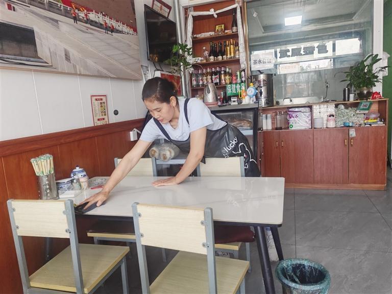 王林生的妻子正在擦桌子。