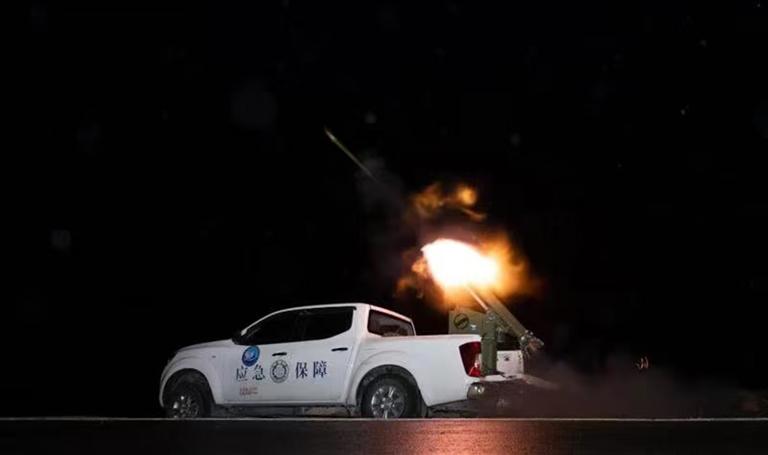 拉薩市人工影響天氣領(lǐng)導小組辦公室工作人員正在實施作業(yè)。 圖由拉薩市氣象局提供