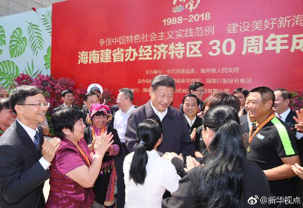 13日上午,習近平總書記在??谑袇⒂^了海南建省辦經(jīng)濟特區(qū)30周年成就展,對30年來特別是黨的十八大以來海南經(jīng)濟社會發(fā)展成就給予肯定。他指出,貫徹黨中央精神不是喊口號,要結合當?shù)貙嶋H、經(jīng)過深入調研形成符合黨中央精神的一系列具體舉措,并在實施中早見成效、大見成效。