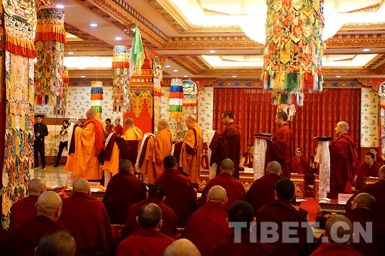 法會(huì)禮請(qǐng)全國(guó)政協(xié)常委、中國(guó)佛教協(xié)會(huì)副會(huì)長(zhǎng)班禪額爾德尼o確吉杰布拈香主法,中國(guó)藏語(yǔ)系高級(jí)佛學(xué)院領(lǐng)導(dǎo)、經(jīng)師、學(xué)員及宗教界教職員工約130人參加法會(huì)。