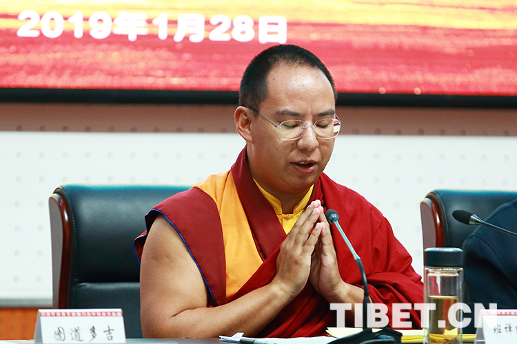 圖為十一世班禪在研討會(huì)上講話。攝影:陳衛(wèi)國