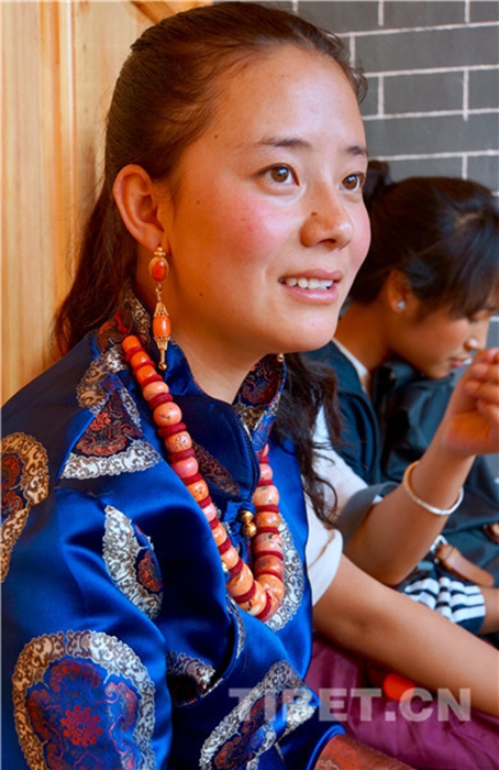 幼年的女孩和已婚女性、老年婦女皆是場外的觀眾,但是也都是精心裝扮、身著藏裝藏飾,美得含蓄而沉靜。我的眼睛不時地被她們的光彩照亮。