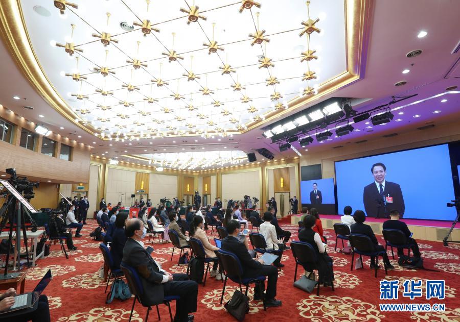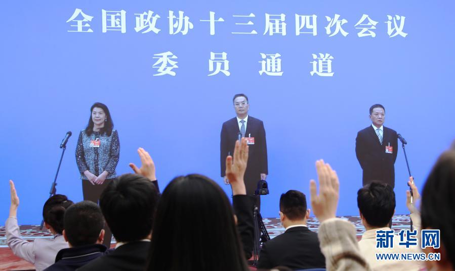 3月10日,全國(guó)政協(xié)十三屆四次會(huì)議第三場(chǎng)“委員通道”采訪活動(dòng)在北京人民大會(huì)堂新聞發(fā)布廳舉行。這是記者在分會(huì)場(chǎng)通過(guò)網(wǎng)絡(luò)視頻方式提問(wèn)。新華社記者 李木子 攝