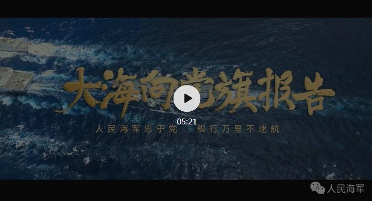 “潛航大洋,他們是捍衛(wèi)國家主權(quán)的殺手锏;翱翔海天,他們是維護祖國安寧的急先鋒;蛟龍突擊,他們是攻無不克的奪命刃……”在人民海軍成立72周年之際,海軍向全社會公開發(fā)布主題宣傳片《大海向黨旗報告》,慶祝黨的百年華誕。通過展現(xiàn)海軍一線部隊忠誠使命、英勇善戰(zhàn)、建功海洋的精神追求,讓你領(lǐng)略新時代海軍官兵的家國情懷,讓你感悟人民海軍向海圖強的豪情壯志。(視頻:海軍政治工作部宣傳局、新華社解放軍分社 聯(lián)合攝制 /文字: 李珂嘉賀 孫飛 /編輯:高澤明)