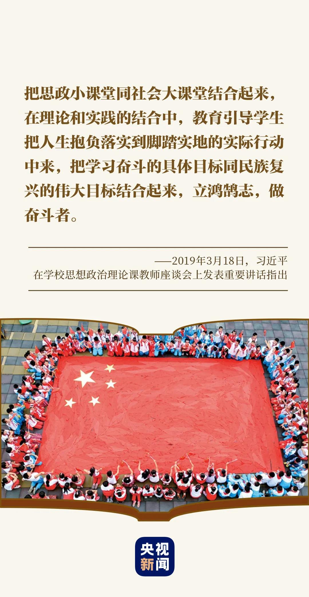 “把思政小課堂同社會(huì)大課堂結(jié)合起來”,2019年3月18日,習(xí)近平總書記在學(xué)校思想政治理論課教師座談會(huì)上指出。