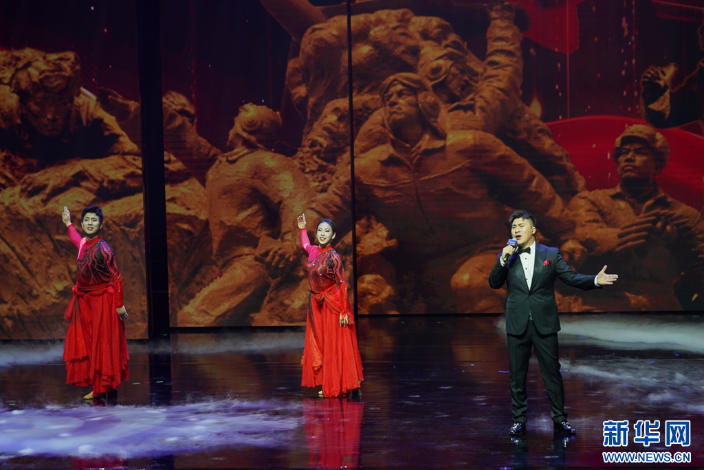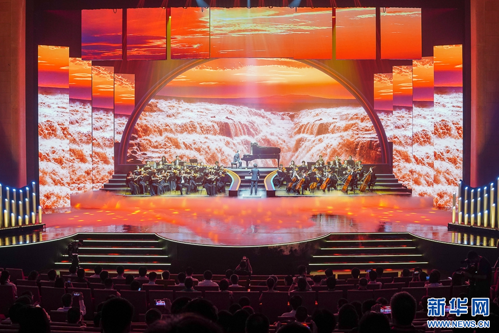 這是7月17日晚上拍攝到的晚會(huì)序幕,鋼琴協(xié)奏曲《黃河》第四樂章:保衛(wèi)黃河。新華網(wǎng) 肖和勇 攝