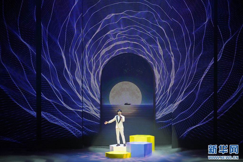 7月17日晚上,青年歌手周深在演唱歌曲《夢(mèng)想的遠(yuǎn)征》。新華網(wǎng) 肖和勇 攝