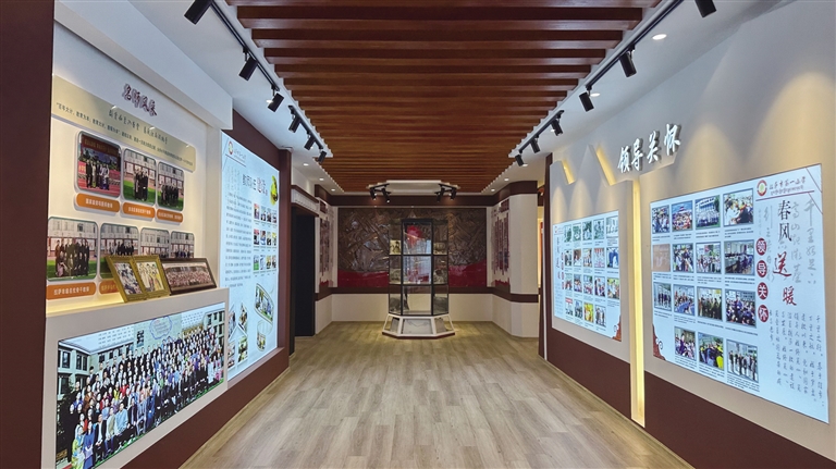 紅領(lǐng)巾講解員楚成白姆指著老照片介紹道:“這是學(xué)生當(dāng)時加入少先隊時的情景,這是學(xué)校成立時的教室畫面,這張是建校初期教師自編的教材圖片。”在上世紀(jì)七八十年代,學(xué)校組織學(xué)生成立了腰鼓隊、舞蹈隊等,學(xué)生們經(jīng)常登上大型活動的舞臺,用精彩的文藝表演展現(xiàn)著青春風(fēng)采。